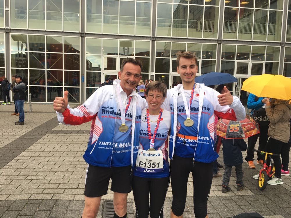 Elke, Michael und Raphael Bürgel finishen beim Mainova Frankfurt…