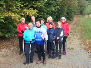 Zunächst begrüßte unser Vereinsvorsitzender Hannes Gieseler die 13 Teilnehmer des ersten Termins und die Trainerin. Nach einer kurzen Aufwärmgymnastik mit Stöcken, ging es dann über Teile unserer Hausstrecke ca. 2 Stunden im Wechsel zwischen Technikübungen und kurzen theoretischen Teilen durch den Wald. Der Spaß kam auch nicht zu kurz, und die abwechslungsreichen Übungen umfassten längere Walkingstrecken, Einzelkorrekturen und auch Videoaufnahmen wurden von jedem Teilnehmer gemacht.
