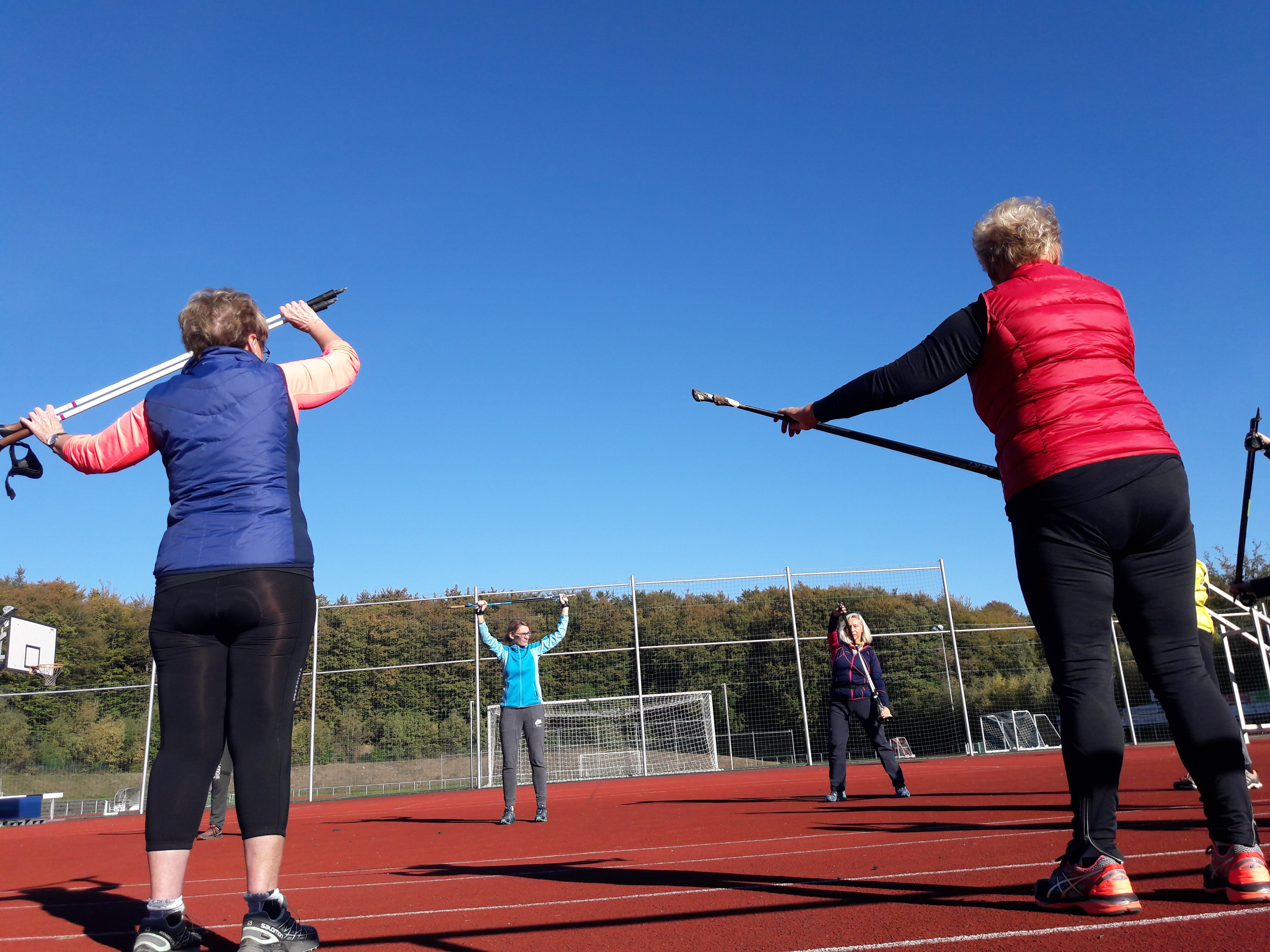 Wieder zurück am Sportplatz, gab es Tipps zu richtigen Stockauswahl und ausführliche Dehnübungen bildeten den Abschluss.