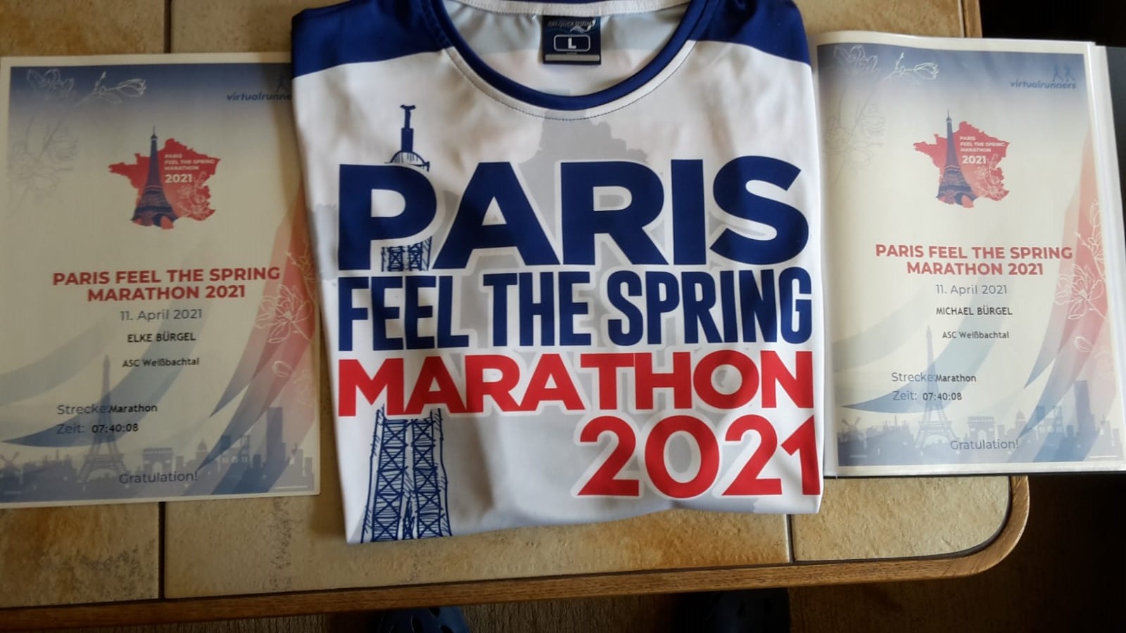 Am 11.04. 21 liefen Elke und Michael Bürgel den virtuell ausgetragenen Paris – Feel the Spring – Marathon in einer Zeit von 7:40:08. Das ganze auf einer Strecke von Winterberg nach Brilon mit über 1000 Höhenmetern. Herzlichen Glückwunsch zum Finish!