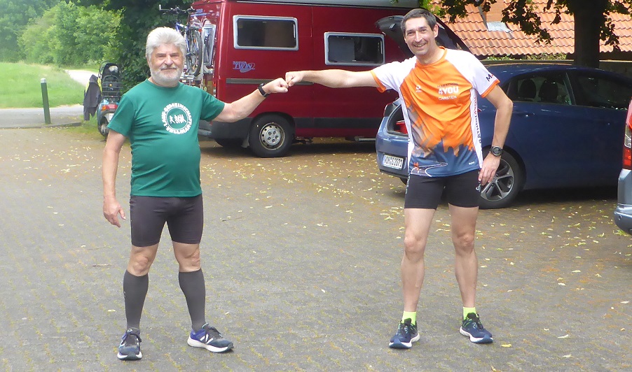 In Zeiten wo alle großen Veranstaltungen abgesagt werden, blühen kleine Veranstaltungen auf. So organisiert Bernd Neumann heute mit dem 1. Wilhelmsthaler Schlosspark Marathon schon seinen 3. kleinen Lauf mit Teilnehmerlimit auf 15 Starter und Abstandsregeln. In der Nähe von Kassel liegt Calden, wo wir im Schlosspark nach 2 km Einführungsrunde anschliessend 8 Runden unsere Kreise ziehen. Entgegen meiner Erwartung kommen 447 Höhenmeter zusammen. Da ich Bernd lange nicht gesehen habe gab es viel zu erzählen, so walkte ich die ersten 2 Stunden 12 km mit ihm, und begann dann auf den restlichen 30 km mein Rennen.