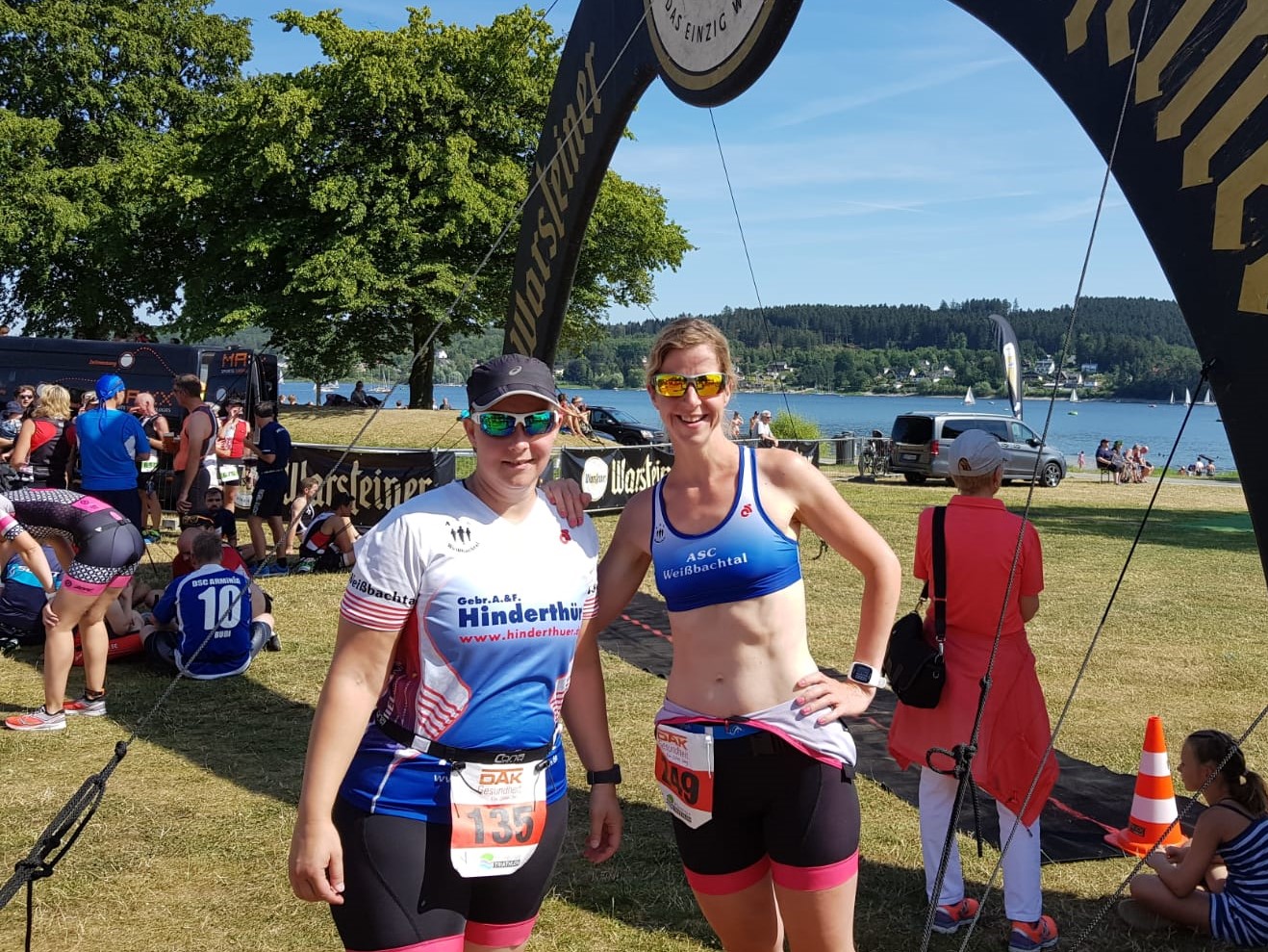 Am vergangenen Samstag machte sich mit Daniela Bräutigam und Sabine Klein ein Teil unserer Triathlon-Abteilung auf den Weg Richtung Möhnesee, um am dortigen Triathlon über die Sprintdistanz an den Start zu gehen. Bei strahlendem Sonnenschein und damit einhergehenden sommerlichen Temperaturen sowie fast keiner Strömung im See konnten beide Starterinnen den Wettkampf beenden. Sabine finishte mit einer Zeit von 01:29:35 als 23. und Daniela mit 02:09:41 als 79. von insgesamt 85 Starterinnen. Sabine konnte sich damit auch den 3. Platz in ihrer Altersklasse sichern.